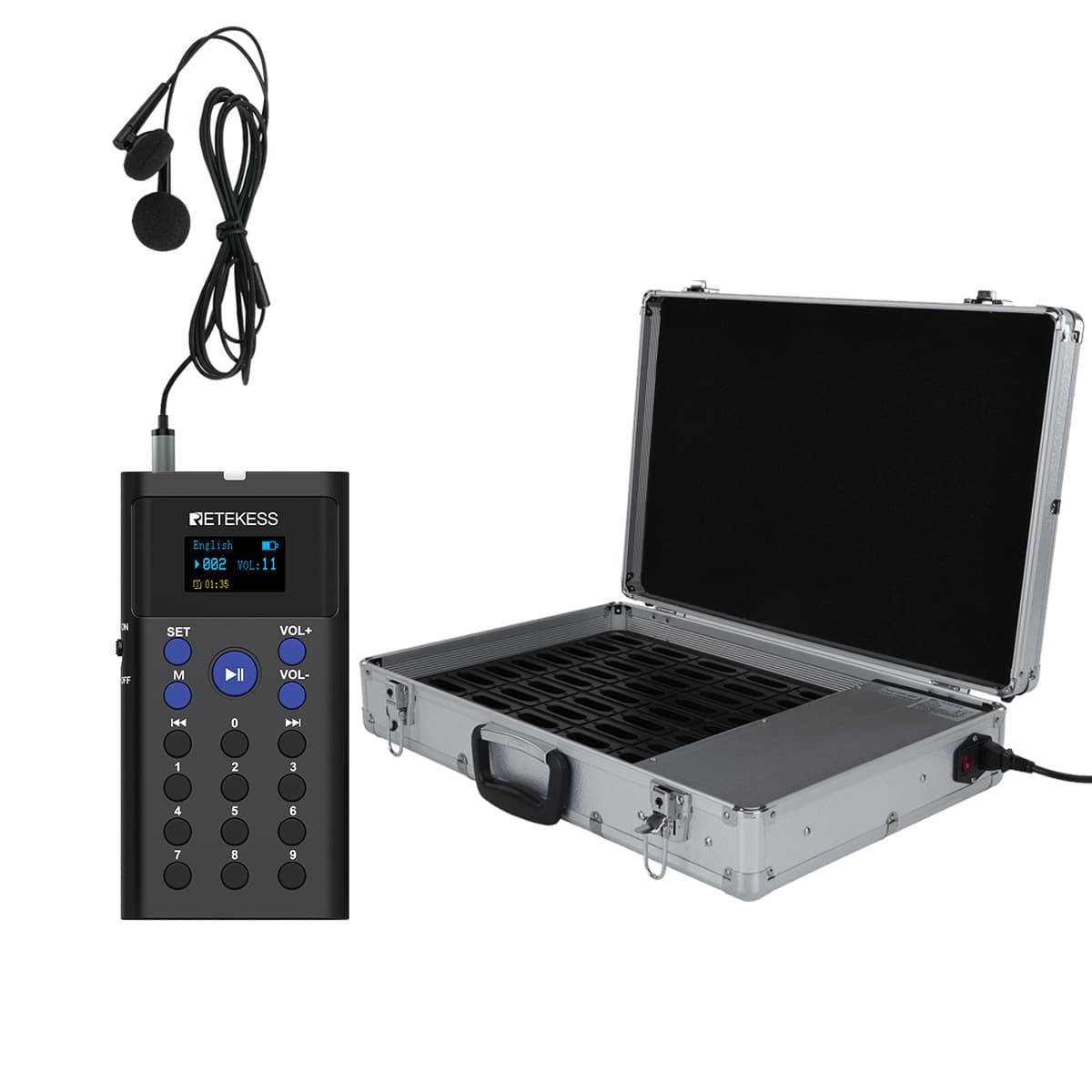 Retekess TT128 Audioguide-System, geeignet für Touristenattraktionen, Museen und Ausstellungshallen, ausgestattet mit einer 45-Slot-Ladebox