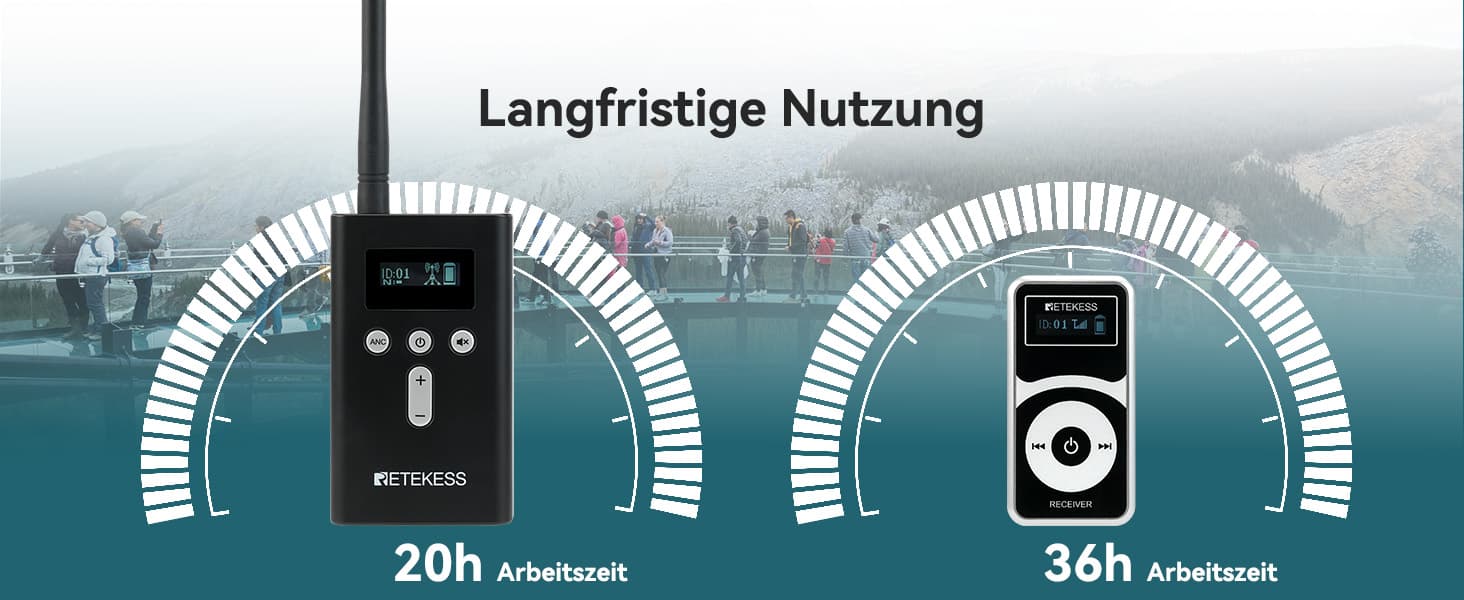Akkulaufzeit des Empfängers bis zu 36 Stunden;