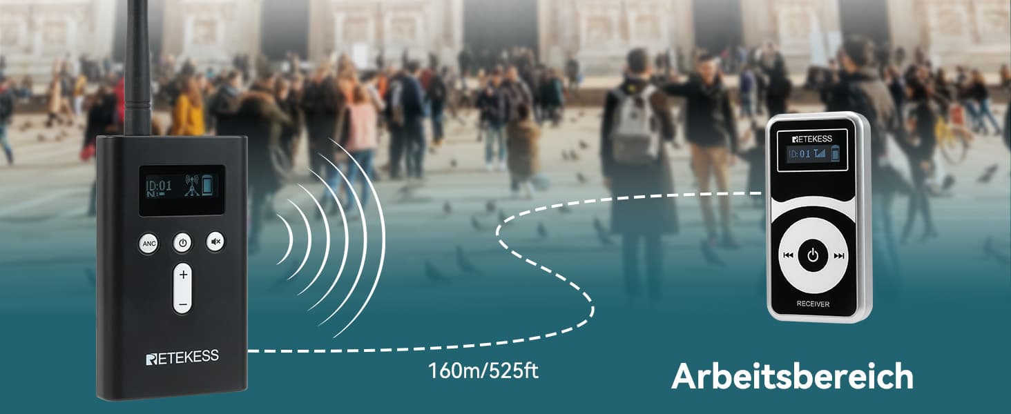 Die Arbeitsreichweite kann bis zu 160 m/524 ft erreichen und ermöglicht so Kommunikation über große Distanzen.