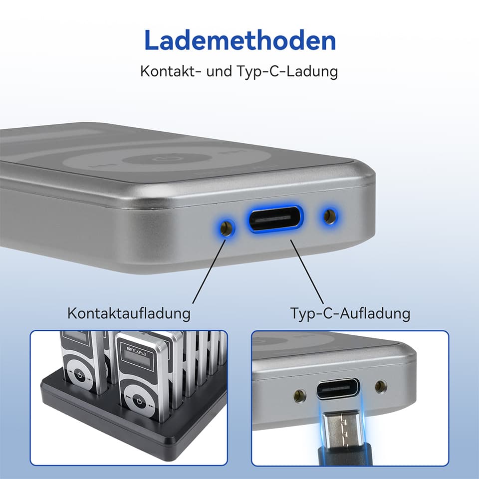 Sender × 1, Empfänger × 15, Lavalier-Mikrofon × 1, Headset-Mikrofon × 1, D-förmiger Ohrhörer × 15, USB-Ladekabel × 16, Halsband × 16, Benutzerhandbuch × 1, 16-fach-Ladestation × 1
