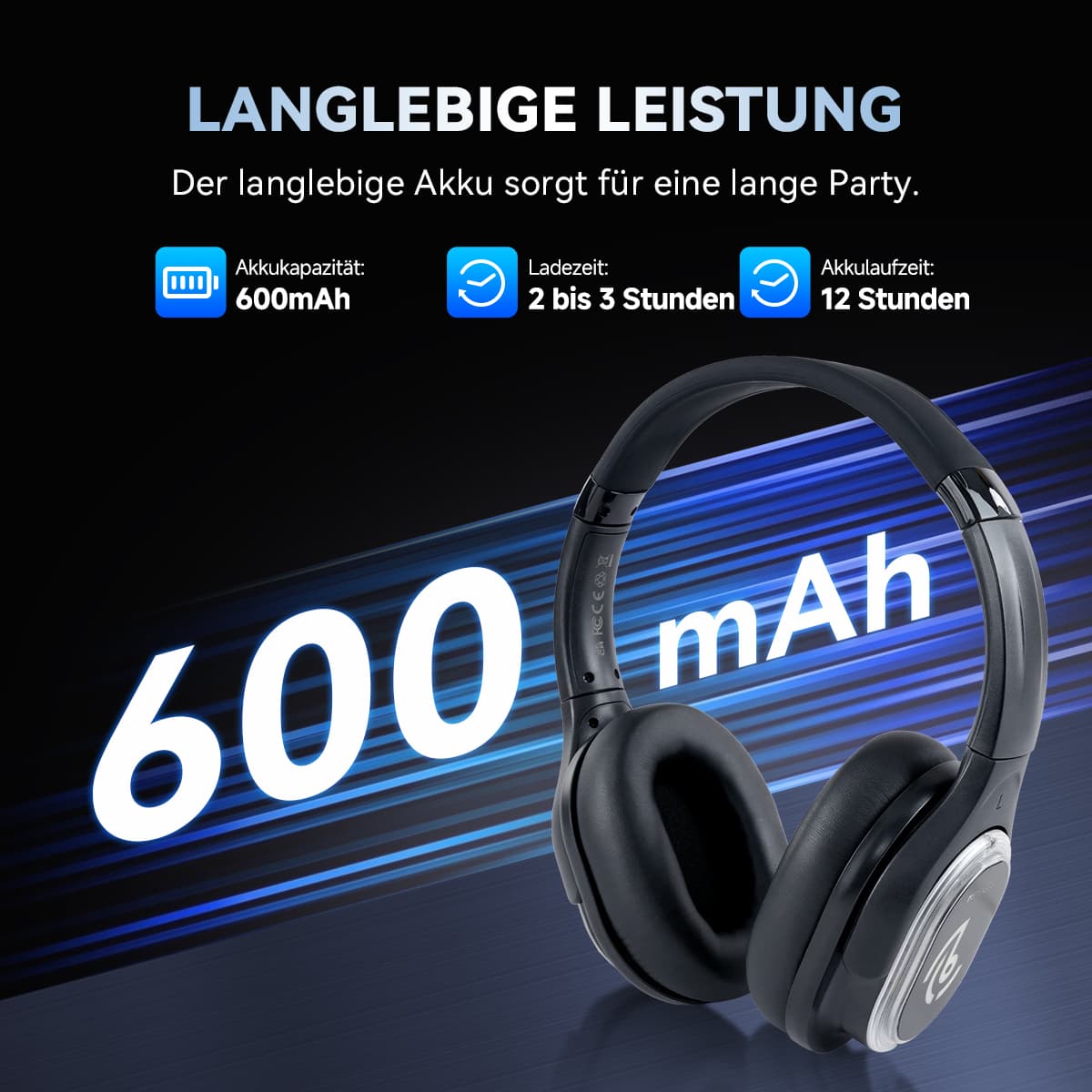 Mit über 12 Stunden Spielzeit pro Ladung für sowohl Kopfhörer als auch den TA003 Sender muss Ihre Party nie pausieren. Tanzen Sie die ganze Nacht frei – ohne Kabel, ohne Unterbrechungen. Schnellladung über den praktischen Type-C-Anschluss, und seien Sie versichert, dass das intelligente Auto-Shutdown zwischen den Sessions Strom spart.