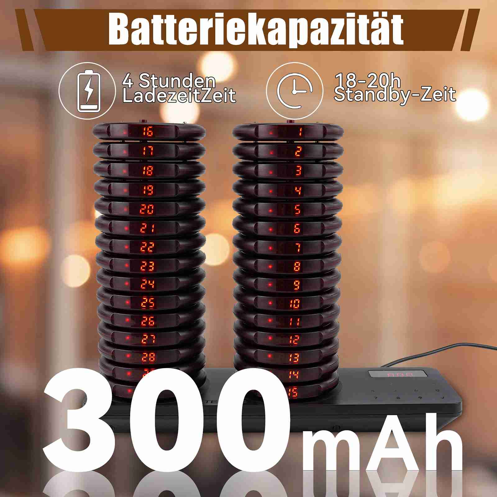 20 Pager und Dual-Ladestation; Laden Sie 20 Pager gleichzeitig.