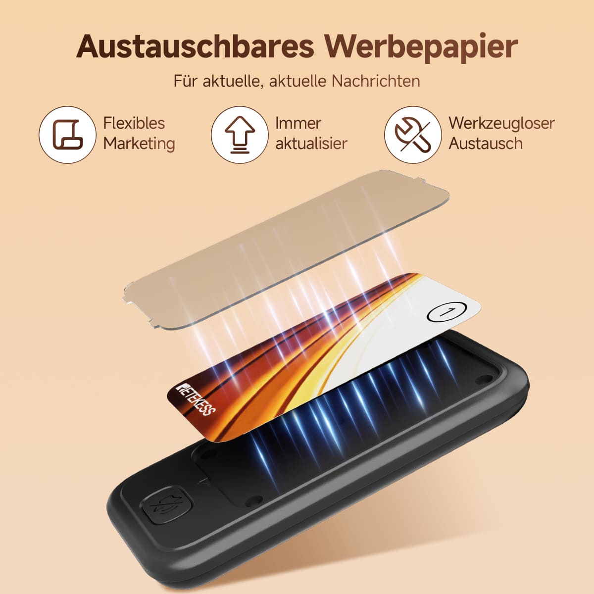 Kontaktieren Sie uns und teilen Sie uns Ihre Daten mit, um einen individuellen Anpassungsservice zu erhalten. Ihr Pagersystem wird mit Ihrem exklusiven Logo bedruckt!