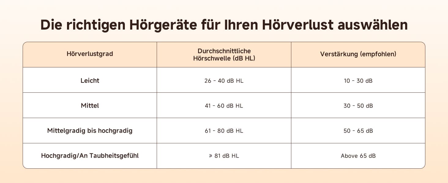 Das smarte Hörgerät TE103 bietet eine Verstärkung von 40 dB ± 3 dB und eignet sich für Menschen mit leichter bis mittlerer Schwerhörigkeit. Das Ladecase unterstützt die gezielte Schallaufnahme und ermöglicht so die bequeme Platzierung in der Nähe von Fernseher, Radio oder Lautsprechern. Das Hörgerät bietet 6 Lautstärkestufen, sodass Sie die Lautstärke je nach Bedarf anpassen können.