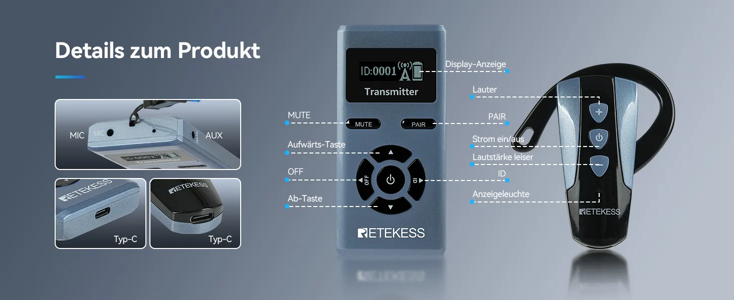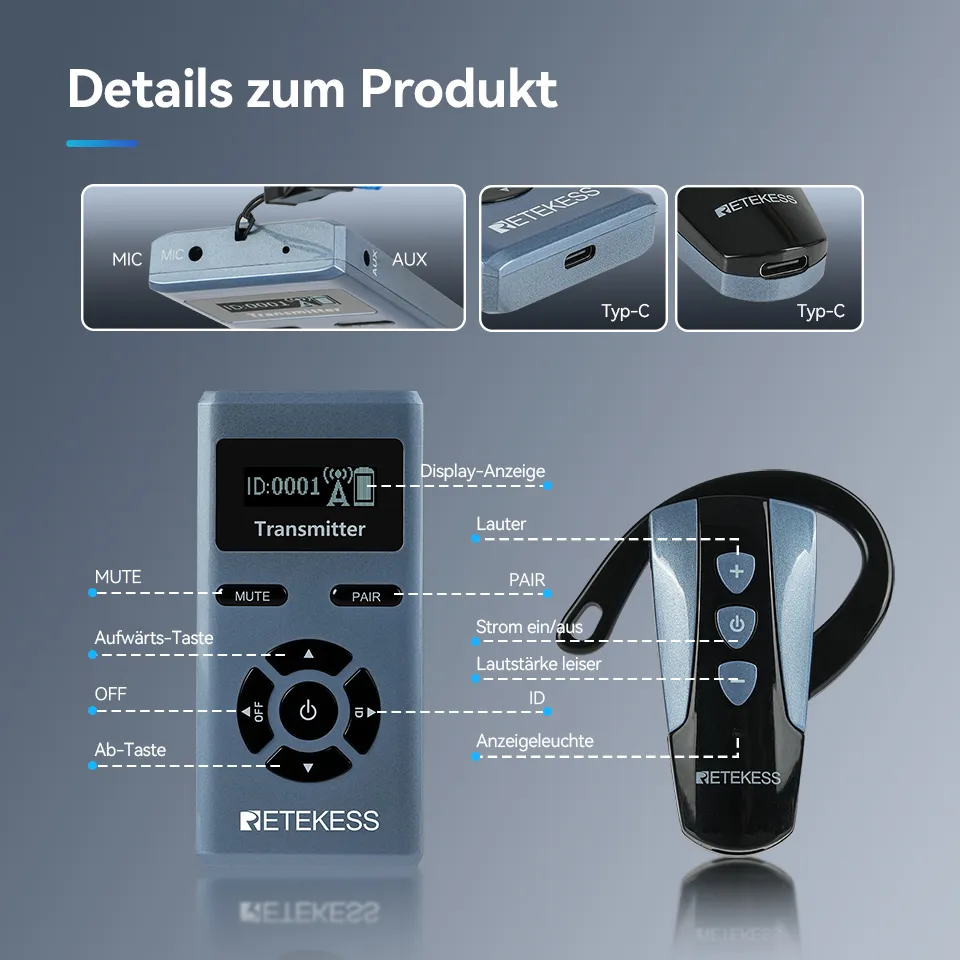 · Mit einem weichen Silikon-Ohrbügel und einem ultraleichten Gewicht von nur 18 g sitzt der Mini-Empfänger sicher und bequem im Ohr – ideal für längeres Tragen.