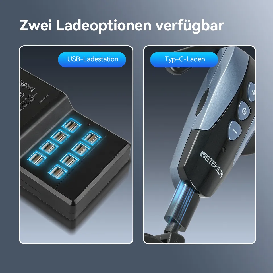 Ladestation mit 16 Steckplätzen: Die USB-Ladestation mit 16 Anschlüssen lädt bis zu 16 Empfänger oder Sender gleichzeitig. Netzteil: AC 100–240 V.