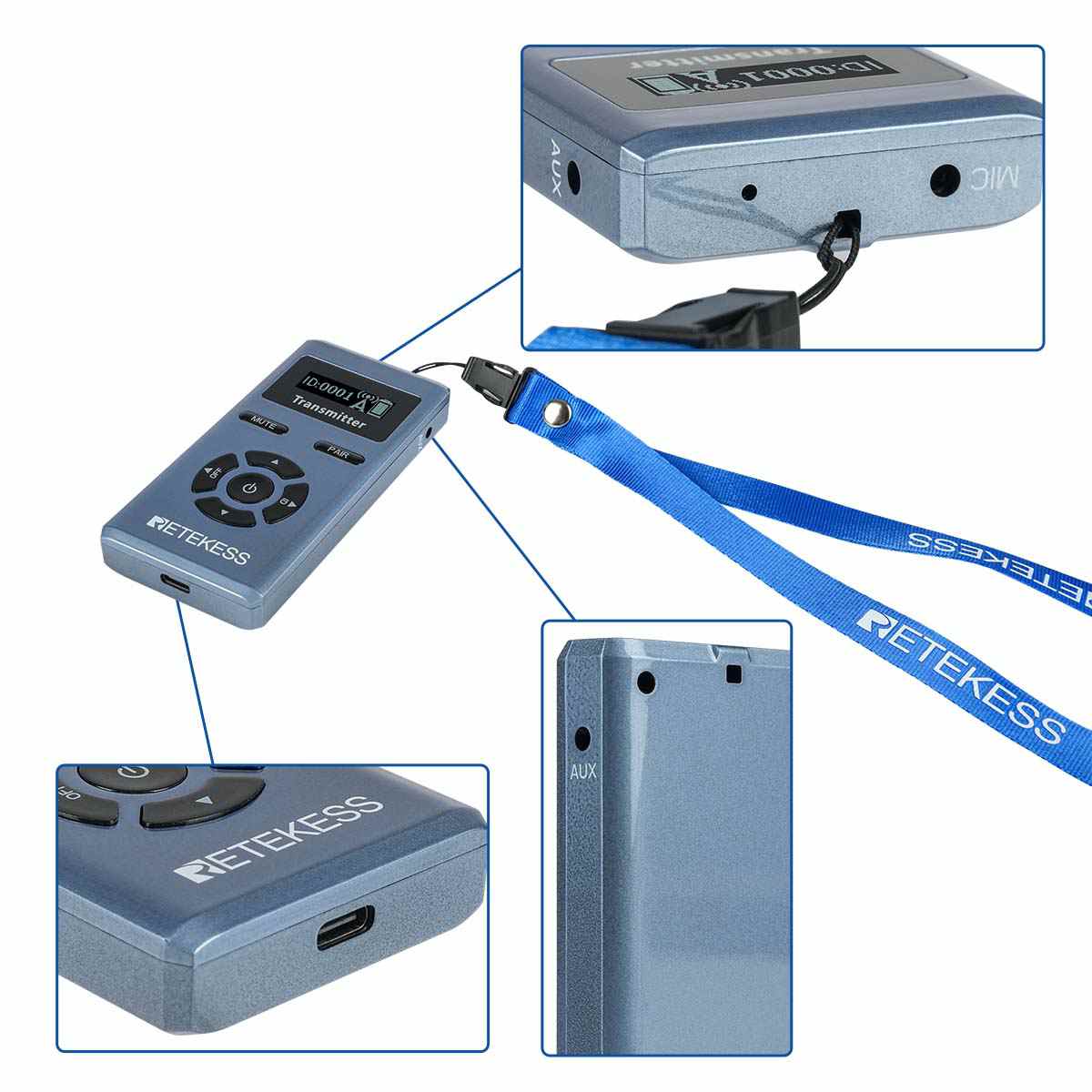 · Der Sender unterstützt Mikrofon- und AUX-Eingänge (z. B. für MP3-Player/Smartphone) und ermöglicht so die Wiedergabe von vorab aufgenommenen Audiodateien oder Hintergrundmusik.