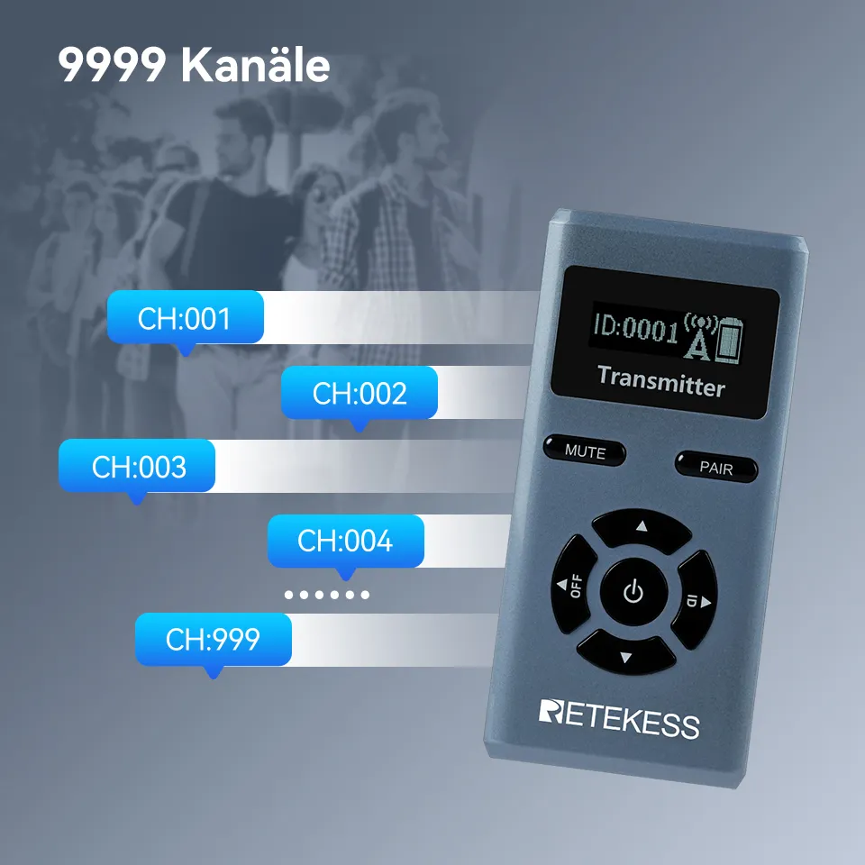 Der Transmitter verfügt über 9999 Kanäle und bietet somit zahlreiche Optionen zur Vermeidung von Störungen und für eine stabile Signalübertragung.