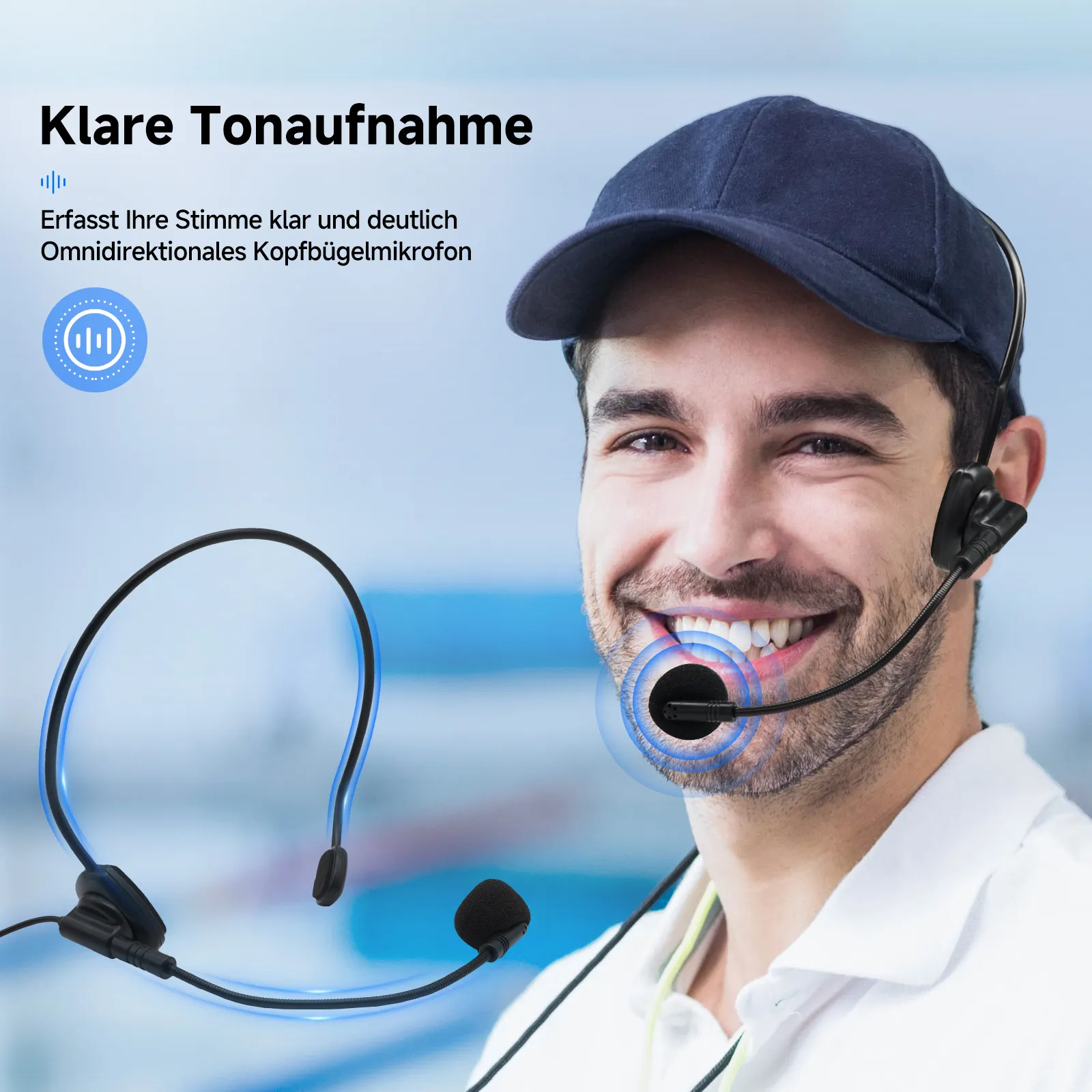 | 1 Sender + 4 Empfänger | 1 Sender, 4 Empfänger, 1 Ansteckmikrofon, 1 Headset-Mikrofon, 1 abnehmbarer Nackenclip, 4 Ohrstöpsel, 5 USB-Ladekabel, 1 Trageschlaufe, 1 Bedienungsanleitung |